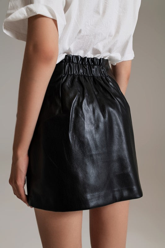 Elevate your wardrobe with this black faux leather mini skirt, featuring a stylish bow detail on the side. Crafted for a sleek, modern look, it offers a flattering fit while adding a touch of sophistication. Perfect for both day and night, this skirt combines edgy texture with feminine charm, making it a versatile piece for effortless styling.