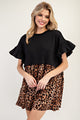 This dress features a streamlined shift silhouette with a high neckline and distinctive faux leather pocket details. Designed to blend contemporary style with functional elegance, it offers a polished, professional look ideal for versatile wear. The subtle leather accents add a modern touch without compromising comfort or sophistication.