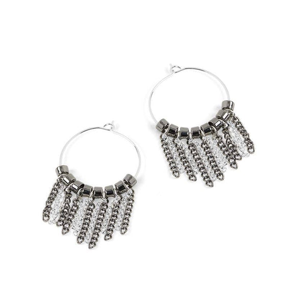 These Chain Curtain Hoop Earrings in Silver/Gunmetal offer the perfect blend of style and safety. These 1.5" hoops feature a chic curtain design that catches the light beautifully. Crafted with hypoallergenic materials and free from lead, nickel, and cadmium, they're gentle on sensitive skin. Whether you're dressing up or keeping it casual, these versatile earrings deliver quality craftsmanship and contemporary flair for any occasion.