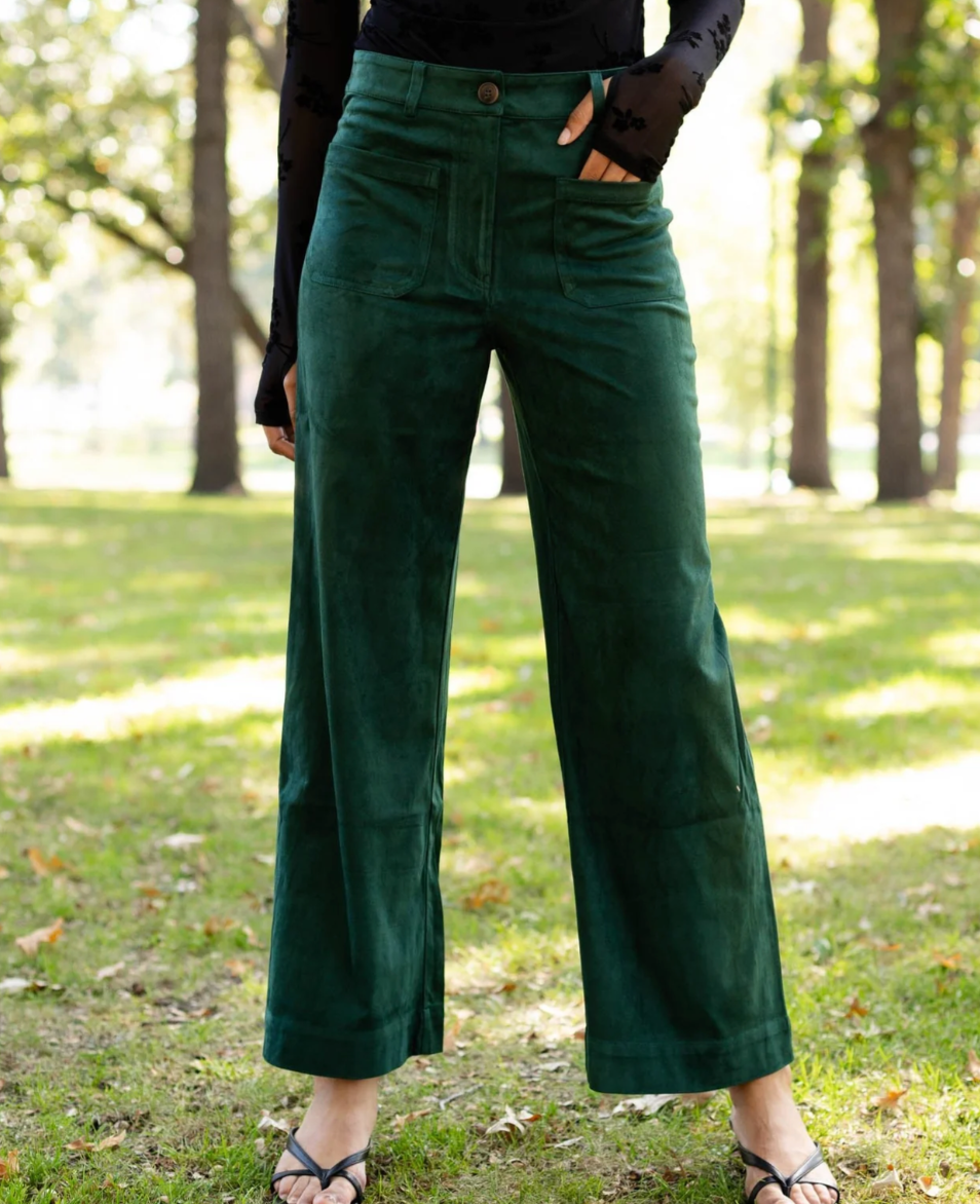 Elevate your wardrobe with these faux suede wide-leg pants, designed for both style and comfort. Featuring a smooth texture and flattering wide-leg cut, they offer an effortlessly chic silhouette. Practical front patch pockets add convenience without compromising the sleek design. Perfect for professional or casual settings, these pants blend modern sophistication with everyday functionality.