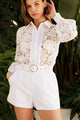 A graceful solid woven top featuring a ruffled neckline accented with a contrasting tie for a touch of charm. Double-layer ruffled sleeves add soft volume and femininity, making it a standout piece for both casual and dressy looks.