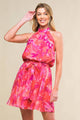 A charming printed woven midi dress featuring a V-neckline and short flutter sleeves for a soft, feminine look. Designed with a flattering waist yoke, faux wrap front, and a hi-lo ruffled hemline that adds graceful movement. The smocked back waistband ensures a comfortable and flexible fit, perfect for any occasion.