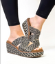 Faux suede mules by Corkys featuring a soft, comfortable upper and a stylish gold link accent across the top. These slip-on shoes combine casual ease with a touch of elegance, making them perfect for everyday wear.