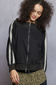 This long-sleeve jacket features a roomy fit crafted from French terry for comfortable wear. It showcases varied striped elastic and thermal trim tape for added texture and warmth, while lace-bordered accents and star patch detailing enhance its unique, refined aesthetic. Perfect for layering, it combines functional comfort with expert design details.