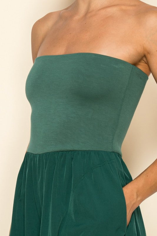 Transform your wardrobe with this innovative strapless jumpsuit that adapts to your lifestyle. Wear it as a complete jumpsuit for polished occasions or fold down the bodice to create relaxed, statement pants for everyday versatility. The soft, stretchy strapless design ensures a secure and comfortable fit, while the draped, flowing bottom delivers a modern silhouette with unrestricted movement. Ideal for casual outings, travel, resort getaways, and elevated everyday styling, this dual-purpose piece combines comfort with contemporary flair. A must-have statement piece that offers endless styling possibilities in one transformative garment.