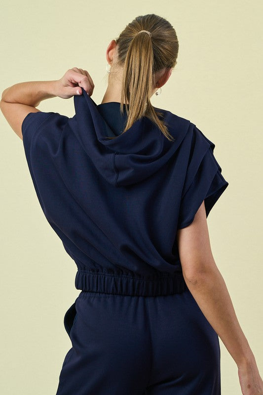 The Pleatflow Hoodie combines contemporary style with thoughtful construction. Its signature shoulder pleat design adds visual interest and dimension, while the self-encased waist elastic band allows you to customize the fit to your preference. Perfect for layering or wearing solo, this navy piece delivers comfort without compromising on modern aesthetics. Ideal for casual outings, work-from-home days, or relaxed weekends.