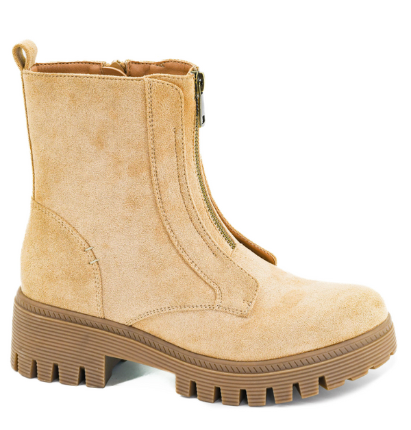 Slip into effortless style with this chic piece featuring a luxurious suede-like finish in soft sand tones. The functional side zipper makes getting dressed a breeze, offering convenient on-and-off wear without compromising on sophistication. Perfect for those who value both comfort and contemporary design.